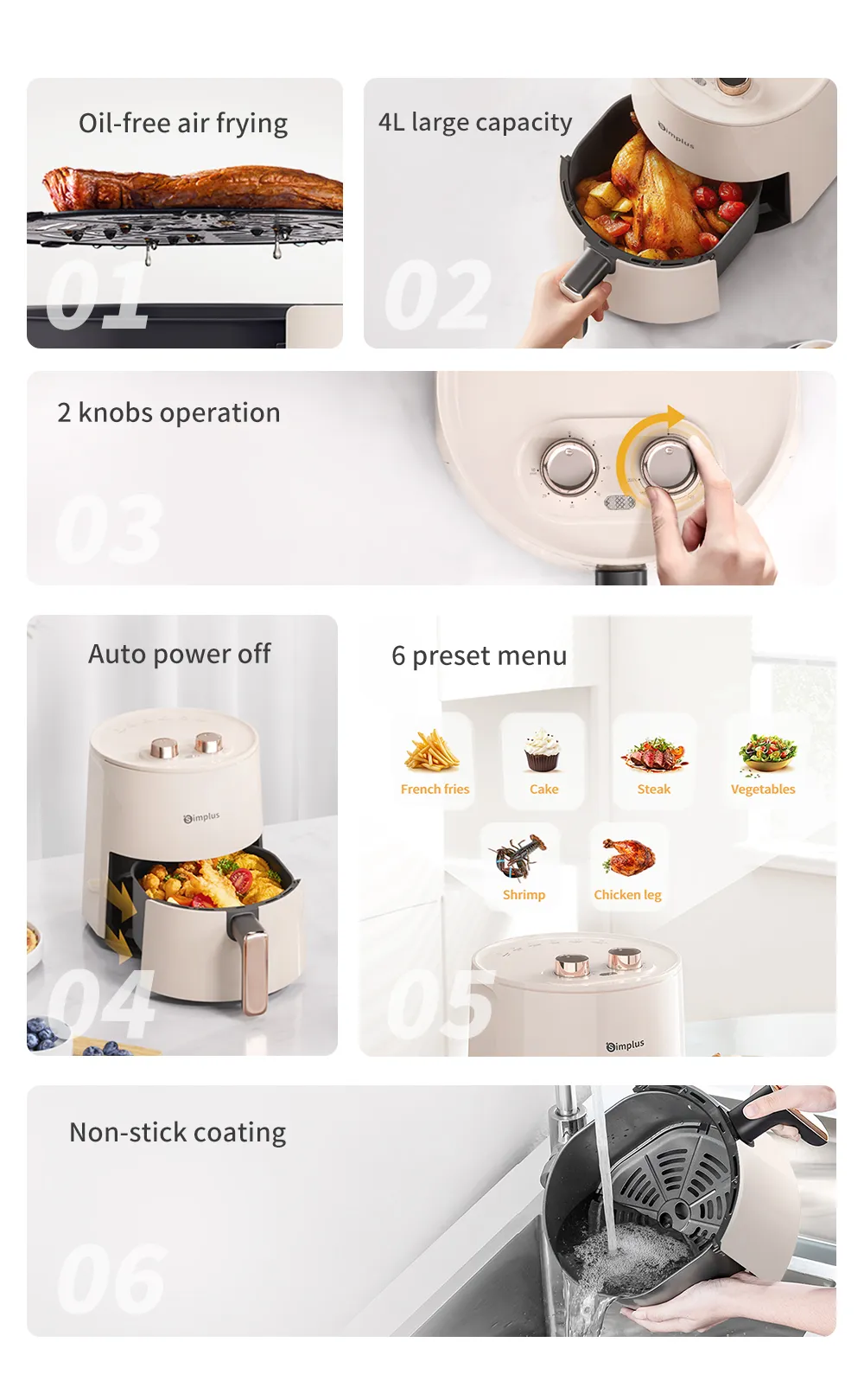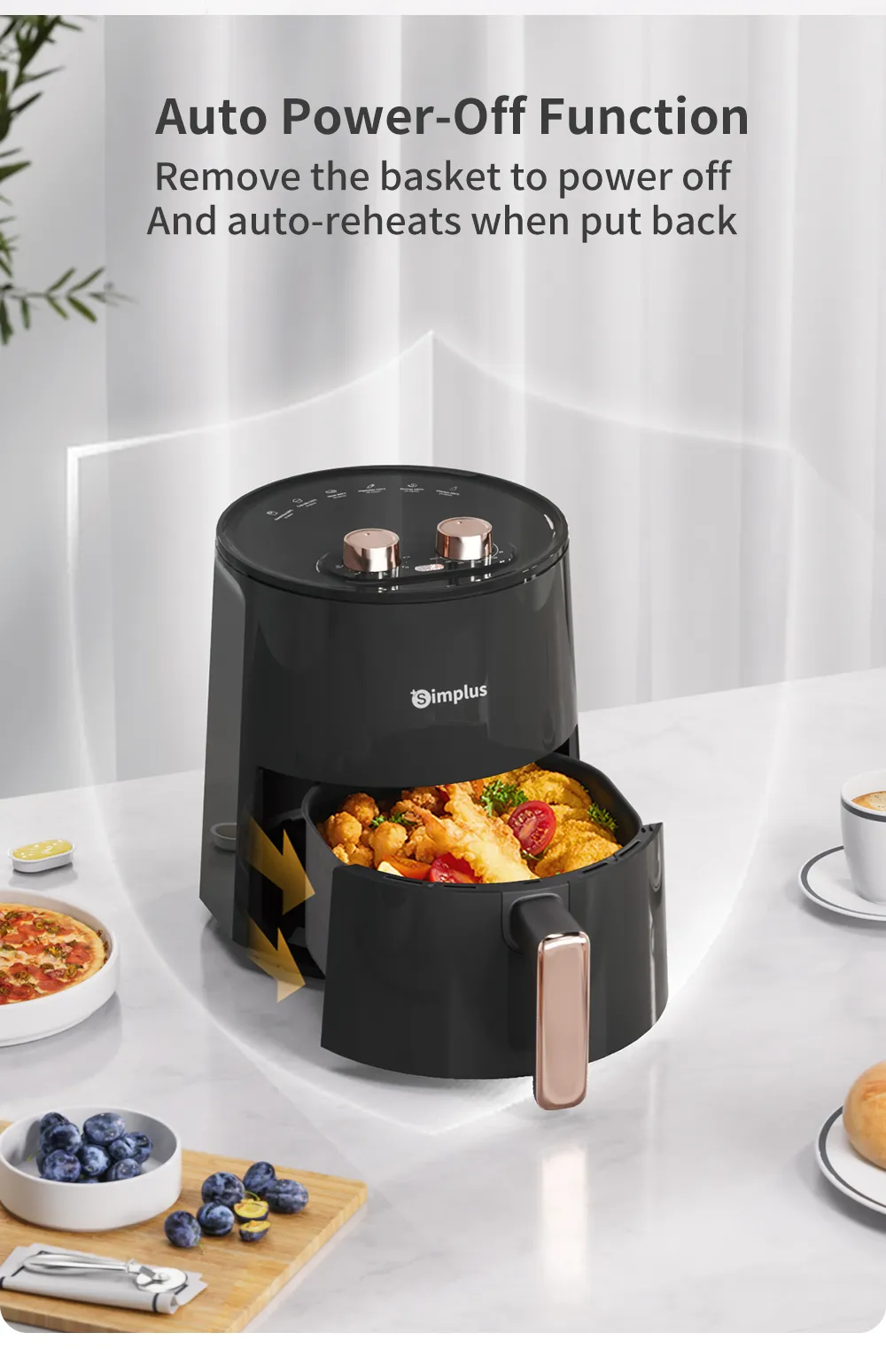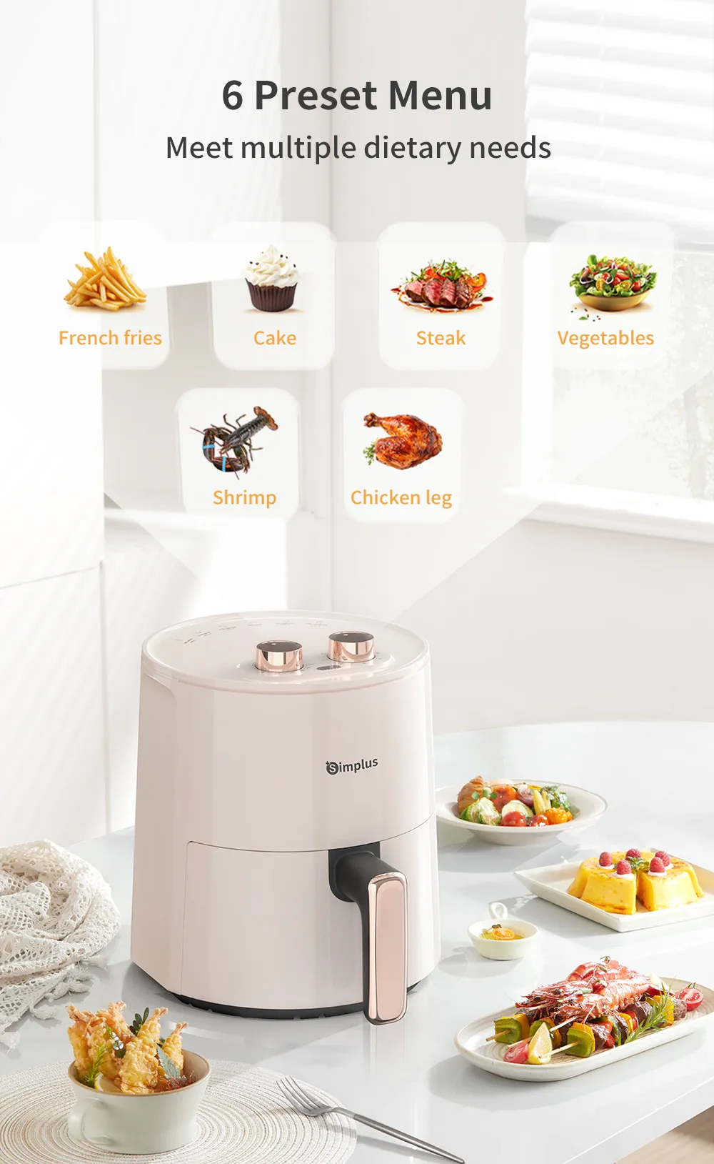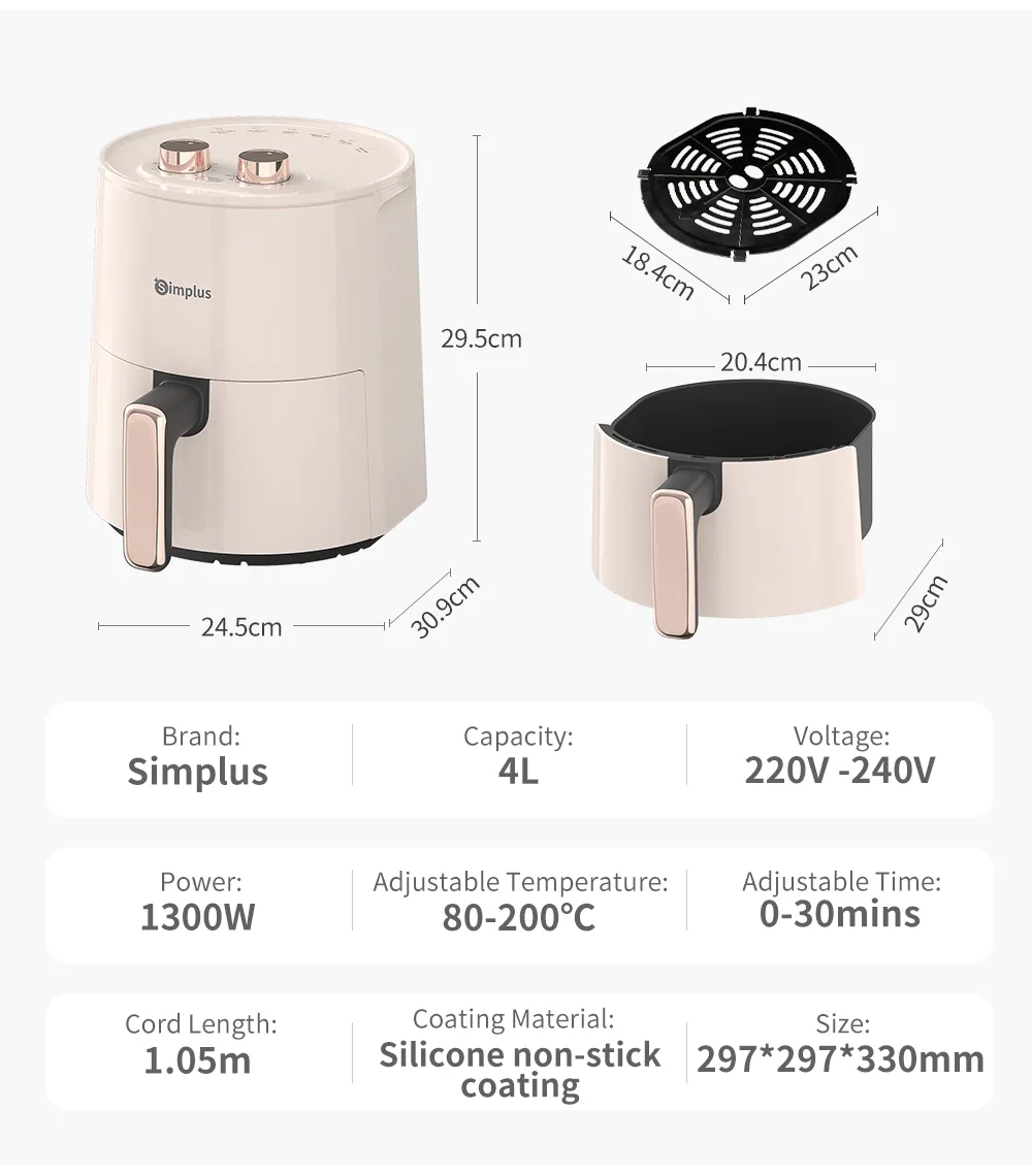 Simplus Air Fryer 4.5L 1300W 8 Preset Menu30min Preset Timer 80-200°C TemperatureControl Non Stick Basket Airfryer Cooker