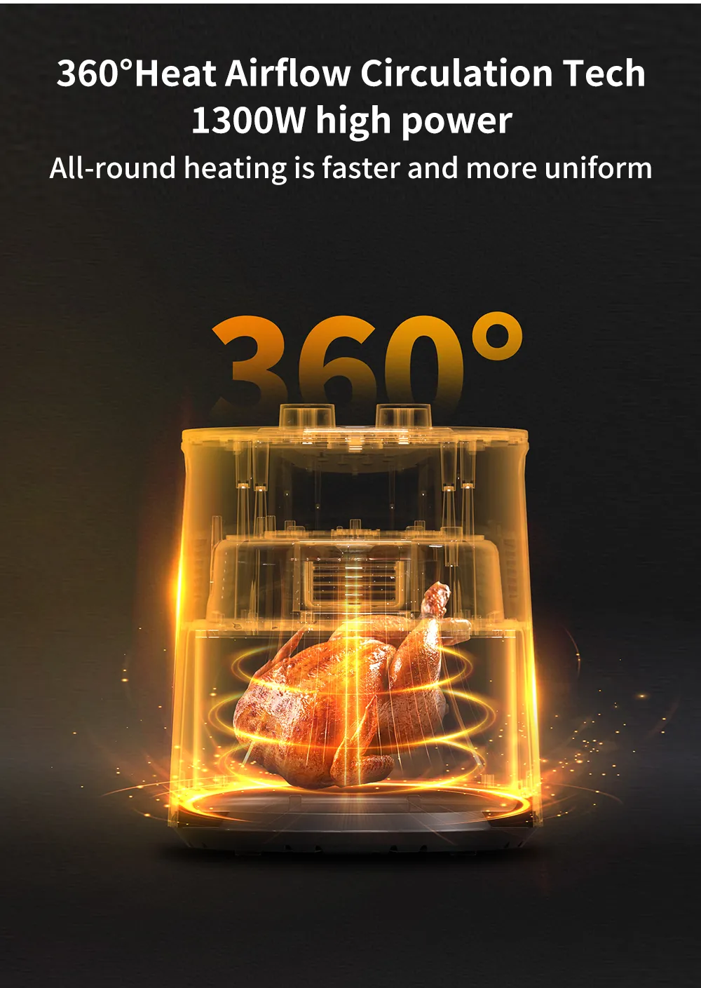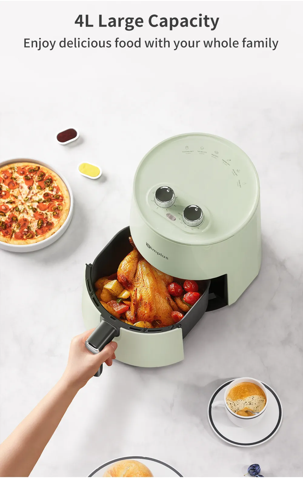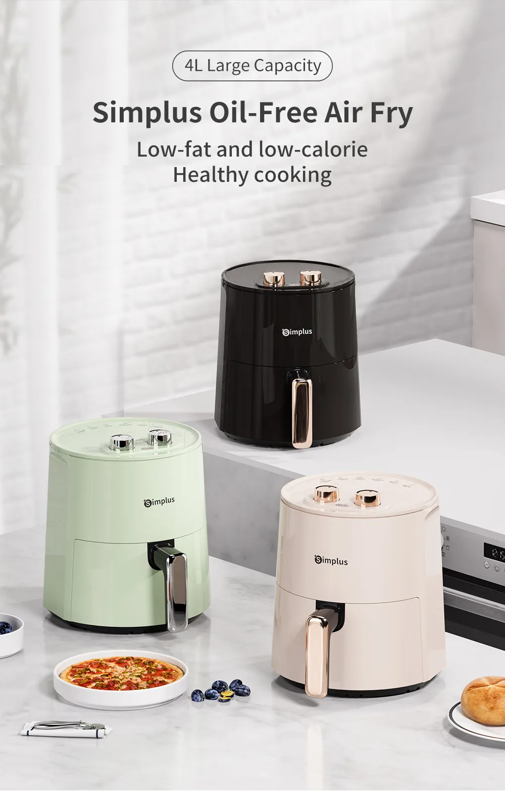Simplus Air Fryer 4.5L 1300W 8 Preset Menu30min Preset Timer 80-200°C TemperatureControl Non Stick Basket Airfryer Cooker